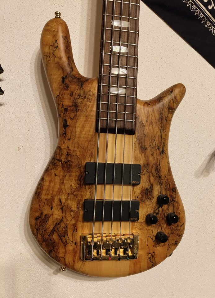 Der Bass klingt trocken gespielt super resonant. Ähnlich meinem 5-Saiter-Rebop. Der Hals ist ein Handschmeichler, das matte Finish fühlt sich auch ganz weich und schön an. Verstärkt (zuhause übers Helix LT) klingt er nach Spector. Immer wieder faszinierend, dass diese Bässe trotz anderer Specs einfach einen eigenen Klang haben. Er ist growlig, spritzig. Nicht zu growlig, was vermutlich an einem fehlenden Neck-Pickup liegt.