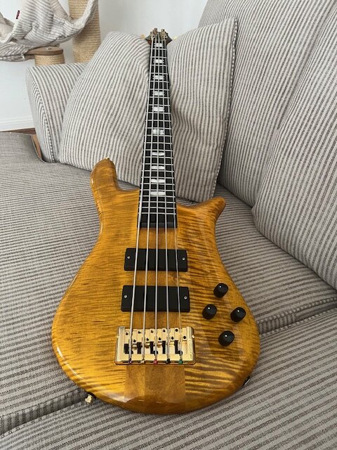 Ich meinte den Ur-Spector, den ich in freier Wildbahn angetroffen habeDas angegebene Baujahr ist 1983 und dürfte angesichts der Seriennummer #675 sogar stimmen. Ich denke, der Bass war angesichts der Dot Inlays und Walnuss eine Art "Jubiläumsmodell" für 5 Jahre NS-Design, oder einfach eine Remineszenz an den NS-1