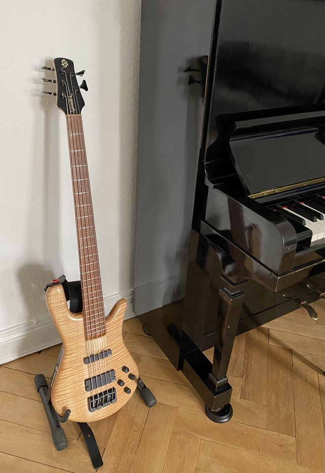 meine beiden Lieblinge. Seit ich den Spector habe, habe ich keinerlei Bedürfnis noch andere Instrumente zu spielen. Es ist ein USA Bolt on mit 35“ Mensur und EMGs. Etwas kopflastig, aber dafür unter 4 KG. Ich behalte nur noch meinen Fender JB 4-String aus sentimentalen Gründen.