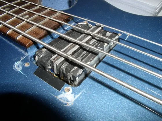 Das ist ein Umbau des originalen Pseudo-Mudbuckers: beide Spulen aufeinander zugedreht, eine umgepolt und ein paar Stahlklingen dazwischen. Klang viel besser als vorher. Bis ein Draht in einer Spule riss."Gibson EB-0, EB-2, and the neck pickup of the EB-3"eingebaut,so hab ich den ja noch nie gesehendu Basteltante