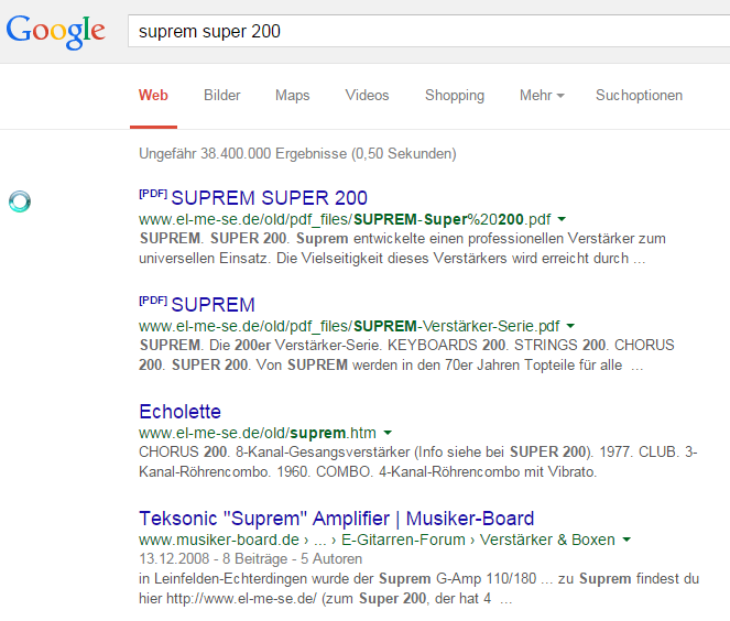 Ja Google. War ich auch drauf gekommenaber der Informationsgehalt ist gleich Null, der sich hinter den Links verbirgt. Leider.