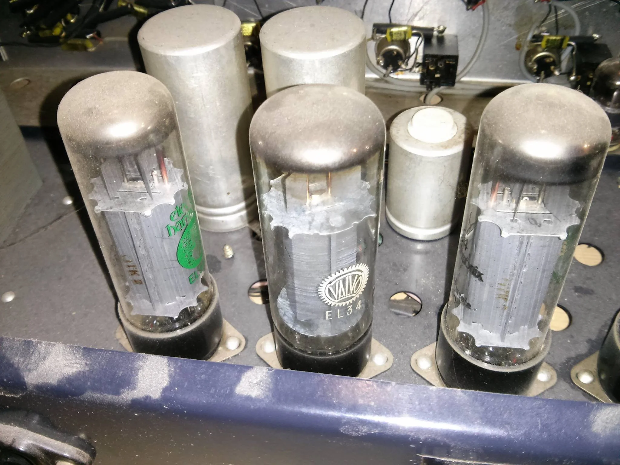 Wie sieht denn die Endstufe aus? 2 oder 4 EL34? Wie die Spannungsversorgung - traditionell, also mit so um die 480 V oder extrem hohe Spannung aus zwei addierten Teilspannungen wie im Dynacord Eminent?