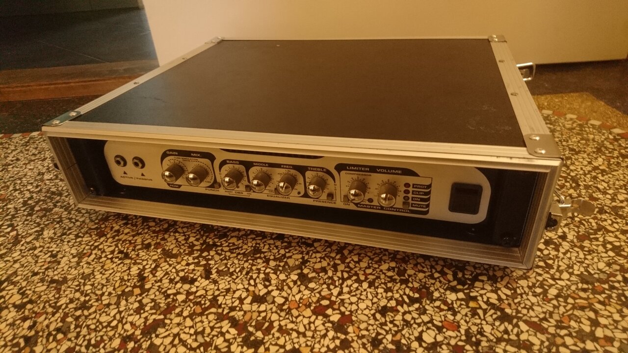 Er ist laut, sehr tiefbassig, kann sehr schön zerren, hat Compression und Limiter an Bord und wurde von mir optisch gemodded. Er kommt im Flyth Pro Case Eco 40