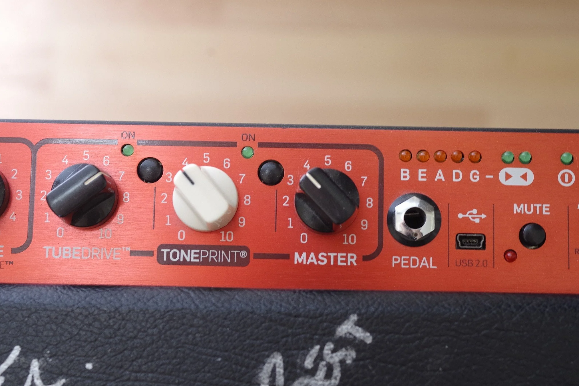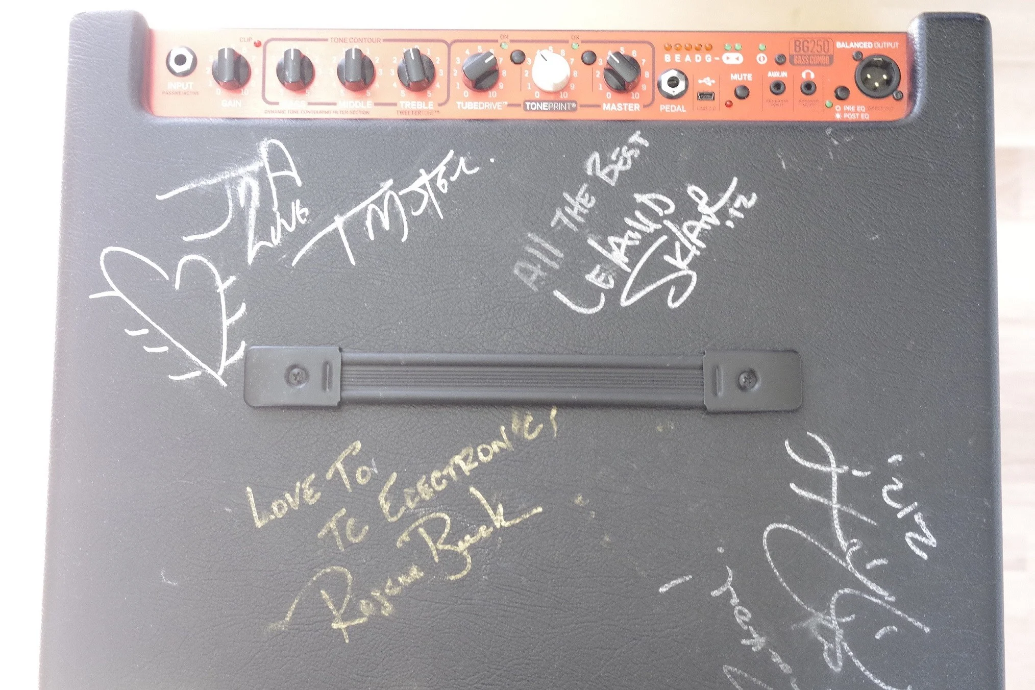 Der Amp wurde auf einer Musikmesse handsigniert von Divinity Roxx, Lee Sklar, TM Stevens und Roscoe Beck!