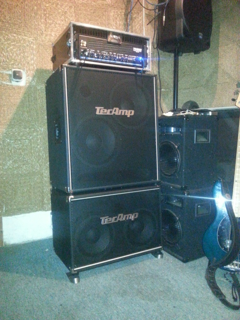 EBS TD660, EQ fast flat, ein bisschen Bass, etwas Tiefmitten rein und ein wenig Drive fürs cremige, leicht angezerrte. Das Stack habe ich ca. 10-15 Grad geneigt, weil ich so dicht davor stehe. Einfach 2 Gummi Türstopper (als Keil) drunter und fertig. Davor nen StingRay 2 Bd, kein Stressbrett, und ab gehts... plug and play.