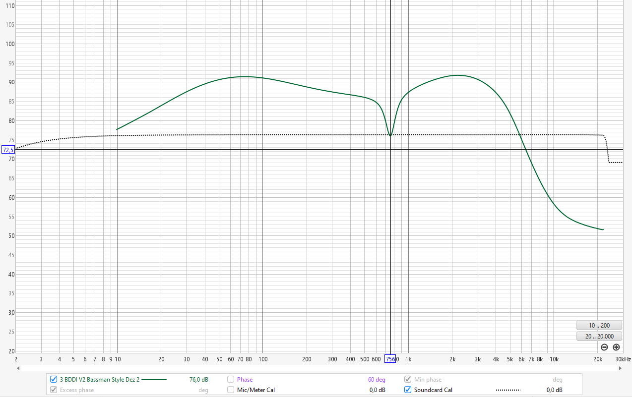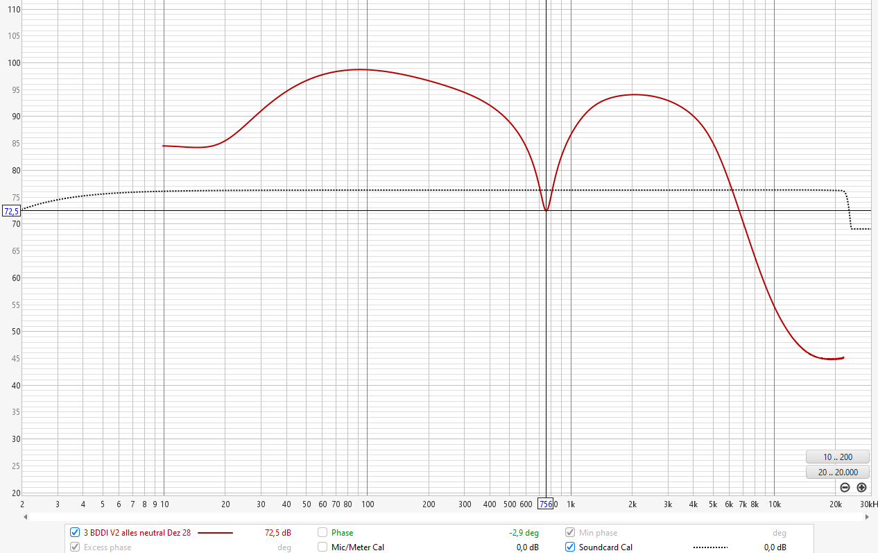 Habe ich dann heute Nachmittag mal gemacht - man bekommt aus dem BDDI V2 niemals einen cleanen Frequenzgang, egal was man an den Reglern dreht - dazu erstmal das Übersichtsbild: