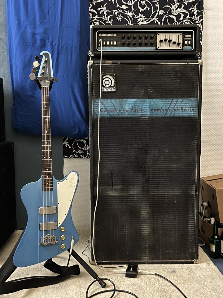Sieht doch geil aus. Klar es geht immer etwas besser.hey ho⊠ich war lange recht inaktiv hier im Forum, habe viel Gear hin- und hergetauscht, und bin nun aber relativ lang beim V4B mit zwei 112AV hÀngen geblieben. Das Stack setzt sich im Proberaum super gegen 2 Gitarren und einen lauten Drummer durch.