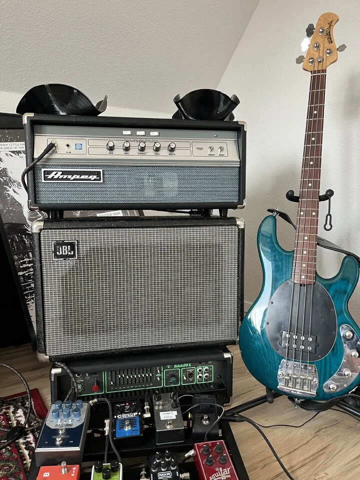 Unter anderem auch drei von Ampeg, wovon zwei hier zu sehen sind