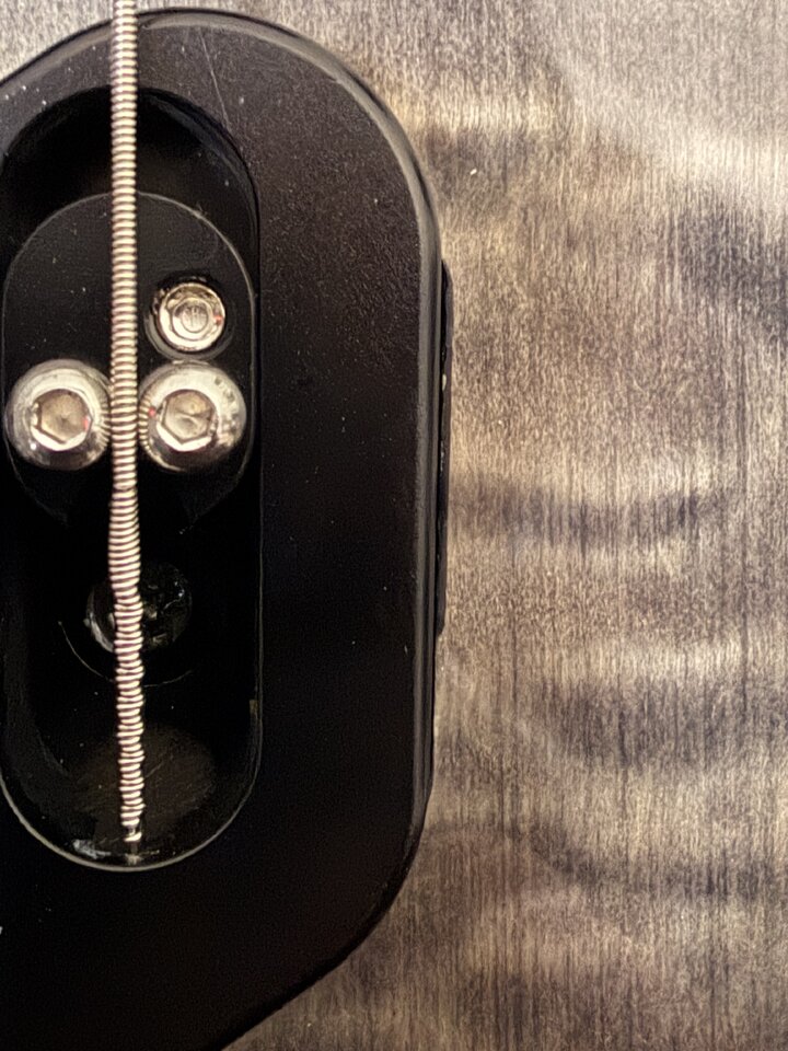 Unterhalb der Brücke des Dingwalls ist ein kleiner Spalt, in den ein Plektrum passt.