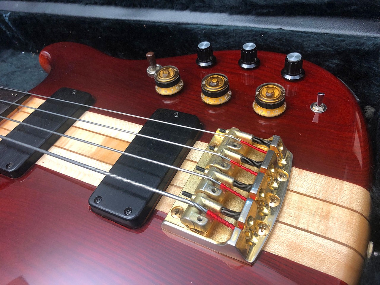 Anbei, paar Pics von meinem Ibanez Roadstar 2 mit neuen PU´s, 2-Band Elektronik aktiv/passiv und Holz PU-Kappen! Gefertigt und verbaut von Christoph Dolf Bassculture! Ich besitze den Bass seit 1992 (ein Tag nach einem Metallica Konzert Black Album Tour gekauft)!
