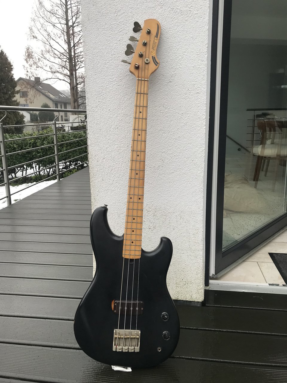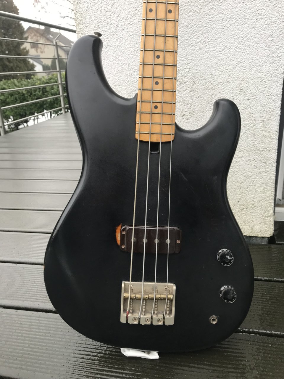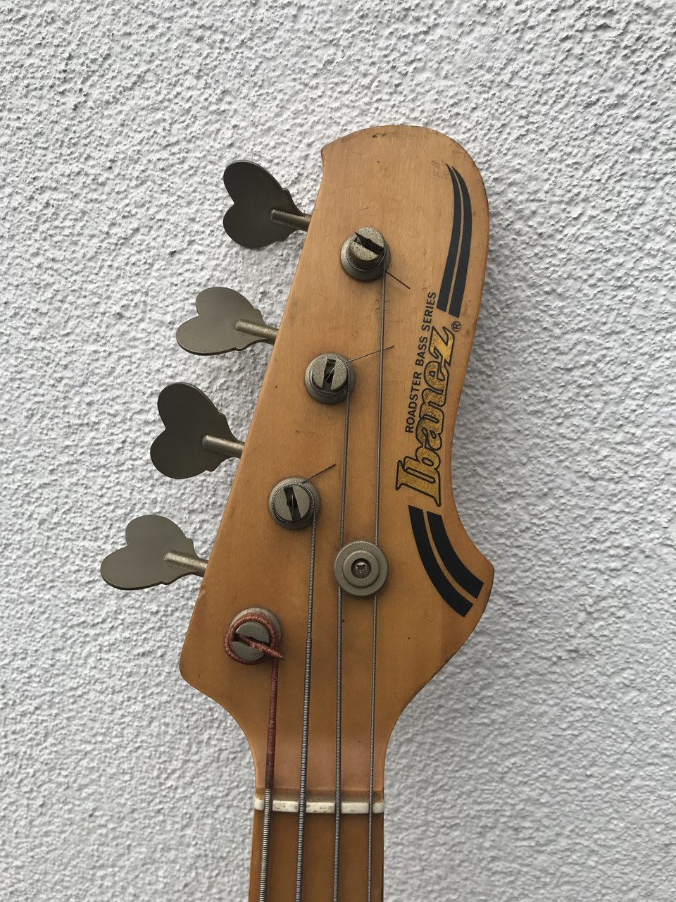 ich habe für einen sehr fairen Kurs einen 1980er Ibanez Roadster Bass erstanden. Ich glaube es ist ein RS 800 BS .... den ein Vorbesitzer bereits vor vielen Jahren (nicht sonderlich professionell) matt-schwarz überlackiert hat. Oben am Pickup sieht man die Honigfarbene Originallackierung ein wenig. Der Bass ist sauschwer, klingt aber klasse.