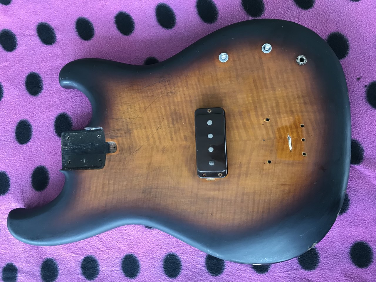 ich würde dir raten, den lackabplatzer oben am pickup mit cyanoacrylat aufzufüllen. sonst bricht das eventuell später weiter aus, insbesondere, wenn du den PU als daumenstütze verwendest.Anhang anzeigen 273481 Anhang anzeigen 273482