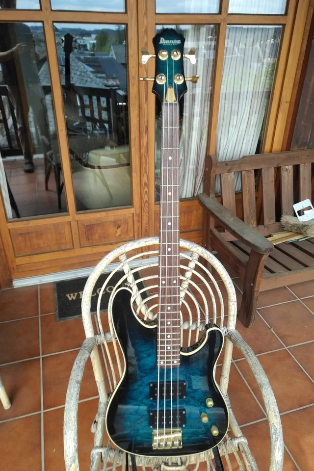 Ibanez-Mechaniken, schön verarbeitet. Der Schalter erlaubt den Wechsel zwischen Paralell, Single Coil (mit Brummen) und Humbucker. Wuchtiger, ziemlich tiefmittiger Ton. Die (Original-)Potis reagieren sehr feinfühlig und kratzen nicht. Wenn der Corona-Wahnsinn vorbei ist, wird der Bass ausgiebig gespielt und getestet, bei normalen Lautstärken! Gewicht 4kg mit Gurt.
