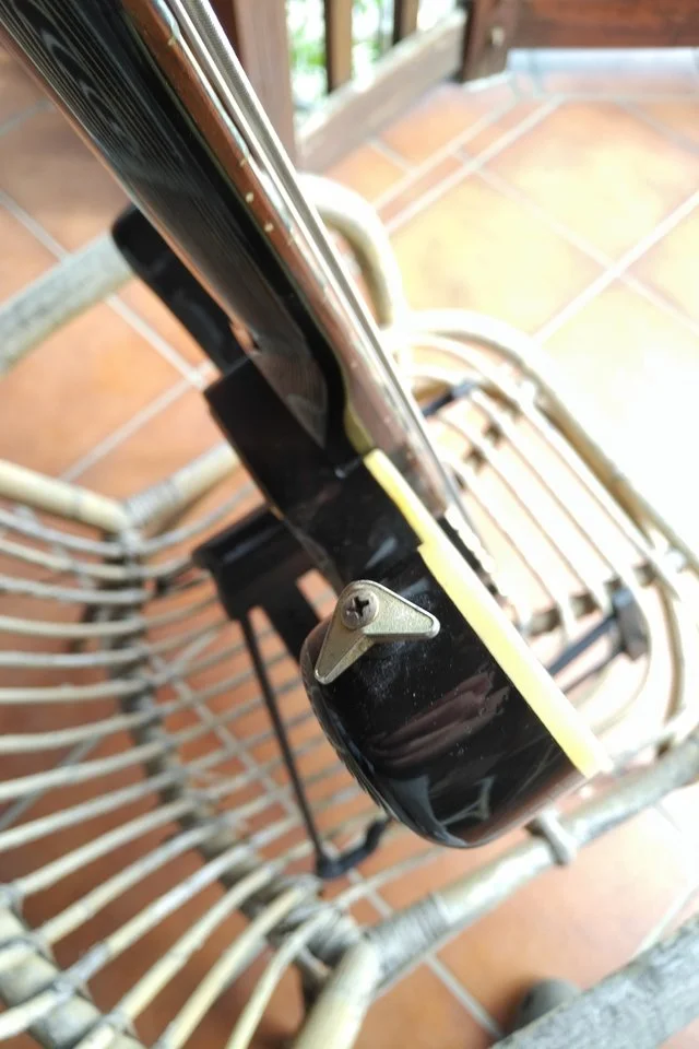 Hab noch eine Folie als Pickguard-Dummy draufgeklebt, weil ich "nackte" Bässe nicht so mag. Kann man problemlos entfernen...