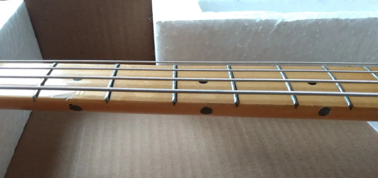 Spielt sich super, der Hals ist eher flach. Von meinen Bässen der mit dem zierlichsten Hals.