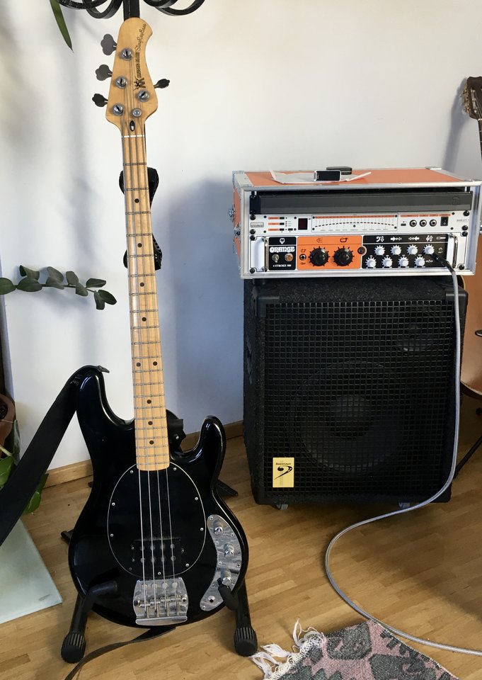 Was hastn da zum Amp noch in das Flightcase geschraubt?Kleines Besteck, mit geliehenem StingRay- wird gleich interessant.