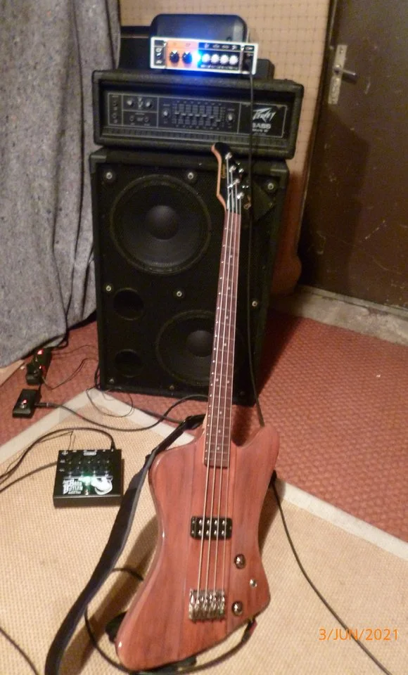 Das ist eine Einzelanfertigung. Den Hals habe ich hier aus dem Forum, der Korpus ist von Deutsches Tonholz (ebay), der Pickup ist ein neck pu von einem G&L L-2000 und zusammengebaut hat das Thomas Harm von Cyan Guitars. Ich wollte einen Bird mit fleischigerem Hals. Voilá.