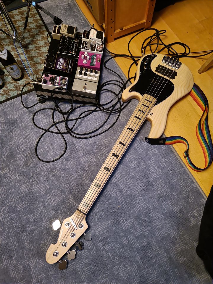 Halli hallo, ich les hier auf Bassic schon länger still mit. Auf dem Bild seht ihr mein Rig von der letzten Probe der Punkrockband, in der ich seit etwa zweieinhalb Jahren den Bass übernommen habe, nachdem der eigentliche Bassist sich den Arm gebrochen hatte und zum Sänger wurde. Der Amp ist bewusst nicht im Bild, weil es sich um einen Roland Cube handelt, der da im Proberaum rumsteht. Vielleicht wisst ihr schon, worauf ich hinaus will... Ich bin ziemlich zufrieden, was Bass und Pedale angeht, aber mir fehlt ein guter Amp, der sich auch im Bandkontext mit einem sehr lauten Schlagzeuger und zwei Gitarristen durchsetzen kann und zum Genre passt. Falls also jemand einen OB1 übrig hat, meldet euch, er ist bei mir in guten Händen