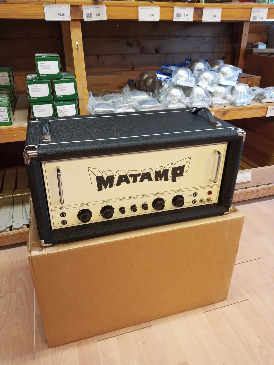 Ich habe es getan! Hatte ja eigentlich einen AD200 auf meiner Liste, nachdem ich mit meinem Terrorbass 1000 sehr zufrieden bin. Je mehr ich mich allerdings mit dem Thema AD beschäftigt habe, desto mehr rückte auch ein ganz anderer Amp in meinen Focus: Der Matamp GT200. Lange Rede, schwacher Sinn, das Ding ist bestellt! Hervorragender Support von Thomas Buchallik vom deutschen Matamp-Vertrieb, mit ihm gemeinsam habe ich die Custom-Specs herausgearbeitet und gestern war es dann soweit, der Amp ist bestellt! Wird komplett in Handarbeit und Point-to-Point gefertigt, die Lieferzeit beträgt 6-8 Wochen. Ick freu mir wie Bolle!![]()