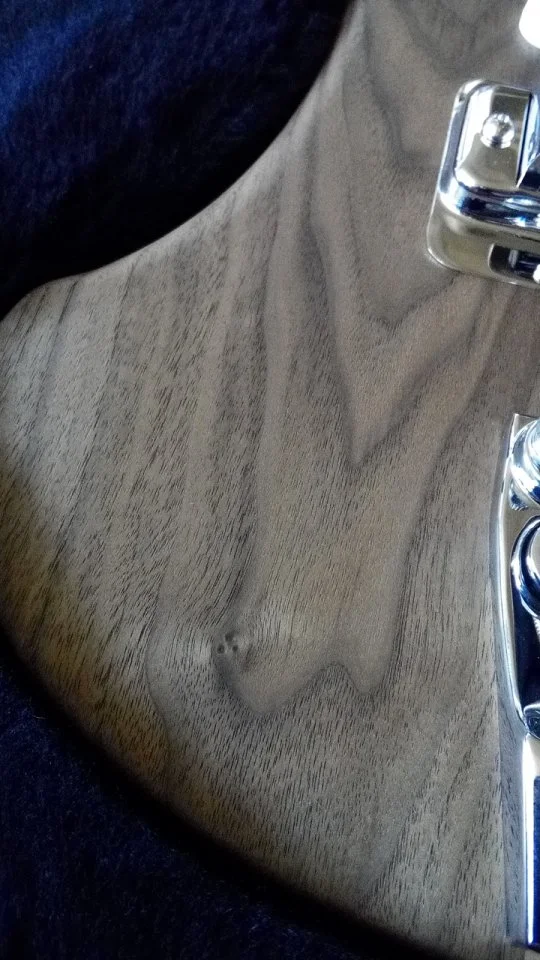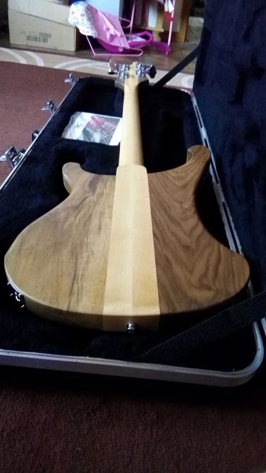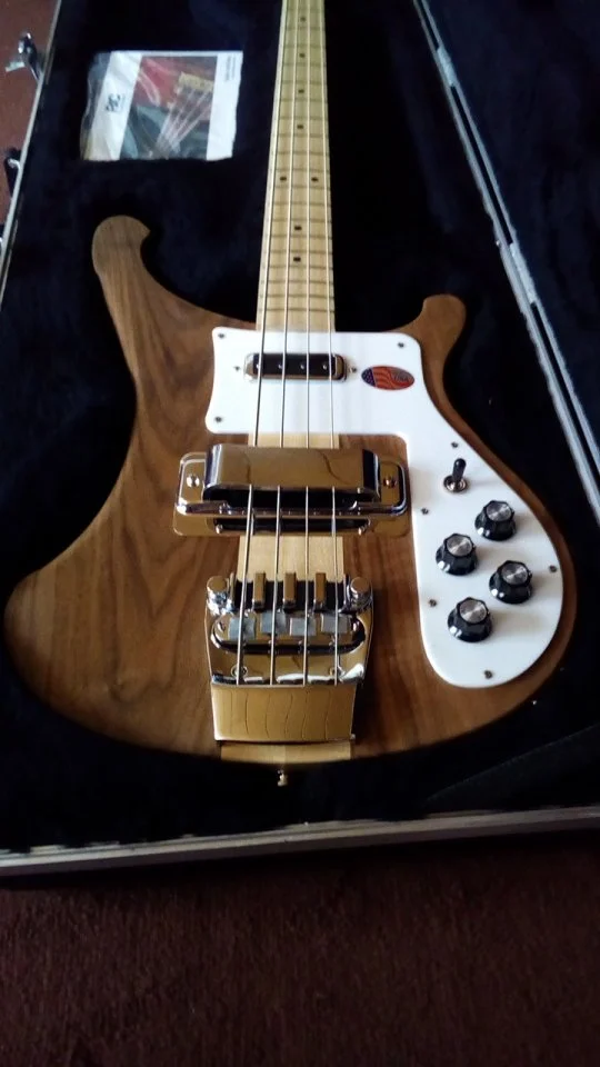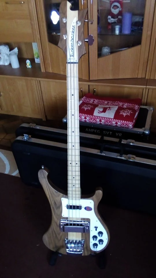 Der Bass ist komplett matt natur.Wahrscheinlich nur geölt.Ich habe mir vorher gedacht,daß der mit seinem Walnuß Body bestimmt nicht nach Rickenbacker klingen wird.