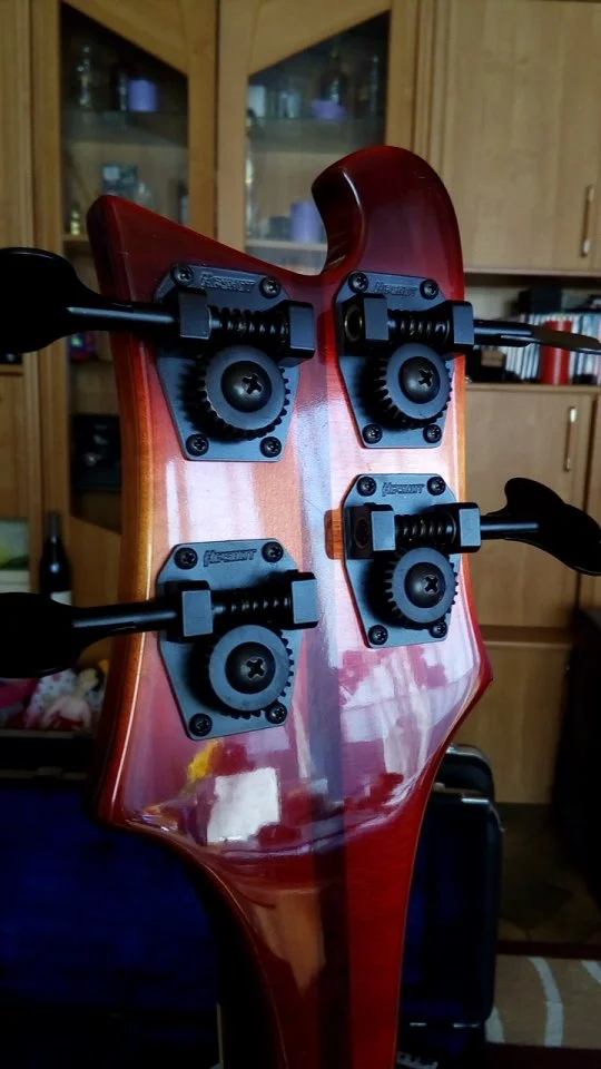 ...die Rückseite der AllParts-Bridge (runde Saiten-Löcher) zeigt eindeutig, daß die Verstärkung, wie bei der neuen 4003er Bridge nicht vorhanden ist, daher die Tendenz zum Tail-Lift auch bei der AllParts-BridgeAlso die Allparts-Bridges sind klasse. Wer braucht da das teure Original? Ach ja, meine Allparts-Bridge hatte auch irgendwann ein leichtes Taillift: Das muss dann wohl so!