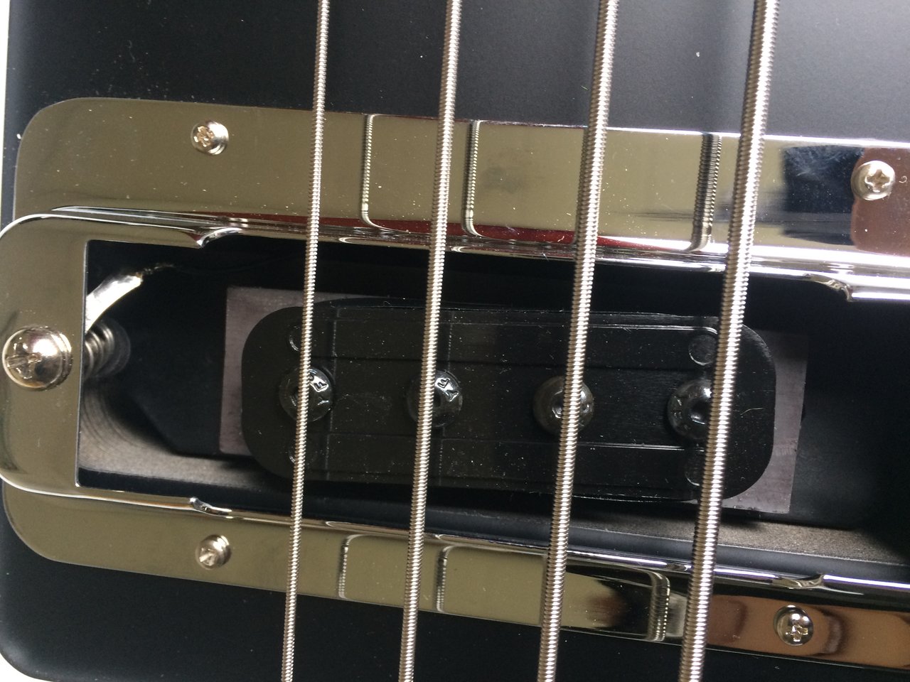 Der Pickup ist schräg auf dem Magneten(?) montiert! Der PU ist gerade eingebaut, die Grundplatte ist ebenfalls gerade, nur der Spulenkörper, in dem die Pole montiert sind, sitzt schief. Ist der Spulenkörper auf dem Magneten aufgeklebt oder ist der geschraubt und lässt der sich nach dem Lösen der Schrauben auf der Unterseite geraderücken?