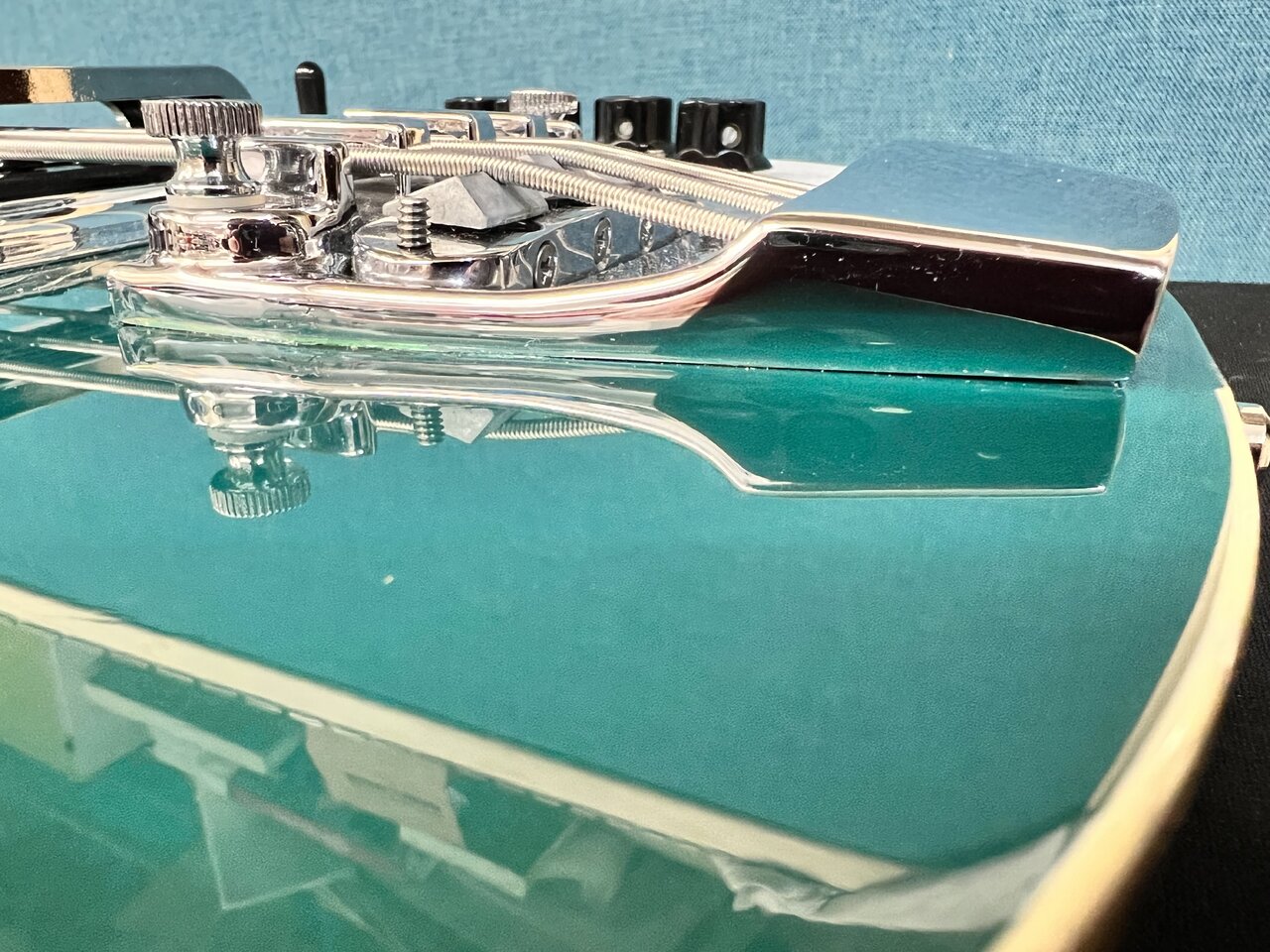 Hier sieht man den beginnenden Tail Lift der Brücke, das liegt an den Fließeigenschaften der verwendeten Legierung. Das ist ein Zinkdruckguss. Wird mit den Jahren nicht besser… es gab Versionen, die hatten am tail auf der Fläche zusätzlich 2 Schrauben. Sieht aber nicht so schön aus.