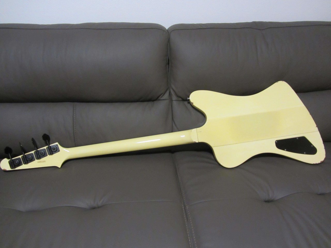 Ich habe den Eindruck, dass der Mittelteil hinter der Brücke neu lackiert wurde. Normalerweise gibt es auf einem Greco eine Dreipunktbrücke PLUS Tailstop. Durch Entfernen des Tailstops sollten die Schraubenlöcher freigelegt sein. Aber hier ist jetzt nichts zu sehen. Außerdem scheint die Farbe etwas anders zu sein?