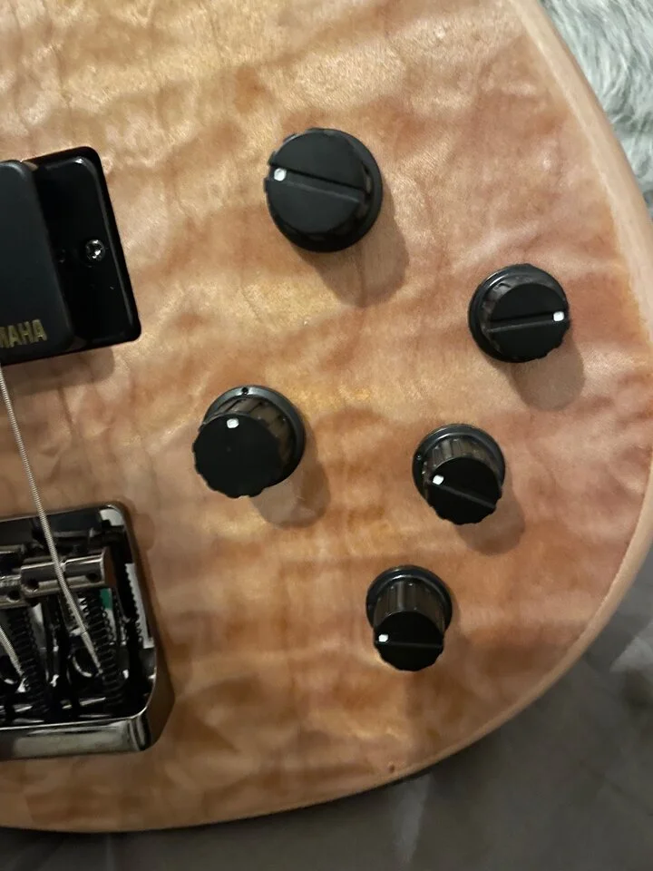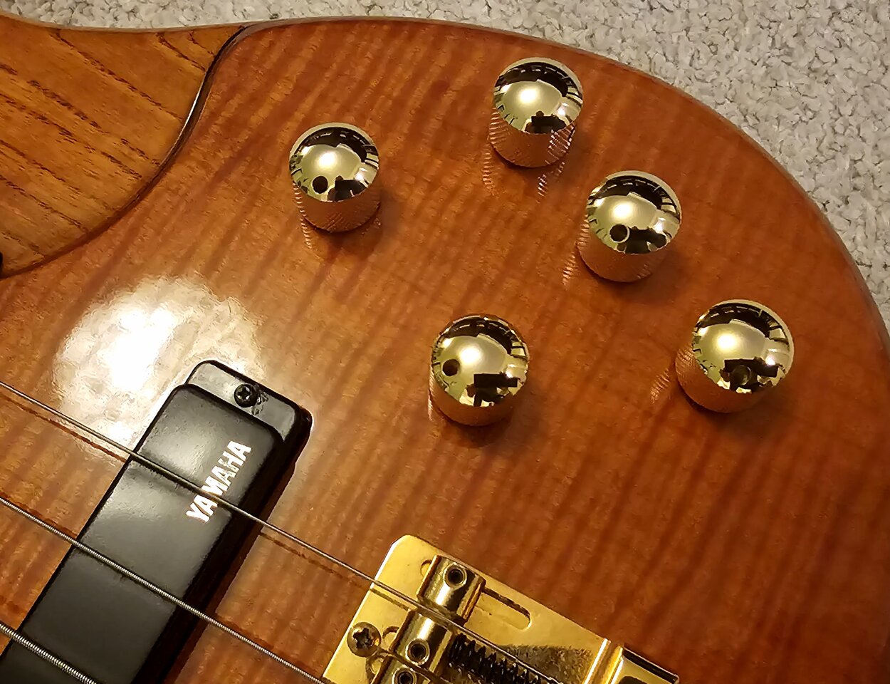 Das einzige was überhaupt nicht zu diesem schönen Bass passt, sind die Plastik Pott-Knöpfe. Habt Ihr einen Tipp, welche man zum Austausch passend währen.
