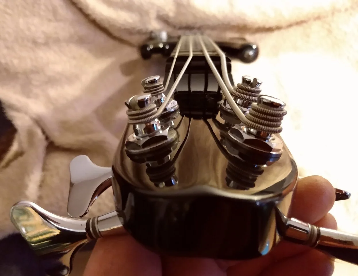 Welche Saiten hast Du da drauf?Das war in Ascheberg bei @Mad Jazz Morales. Ich hatte meinen Yamaha RBX 5A2 dabei, dessen ziemlich eckige Korpuskanten abgerundet worden sind.