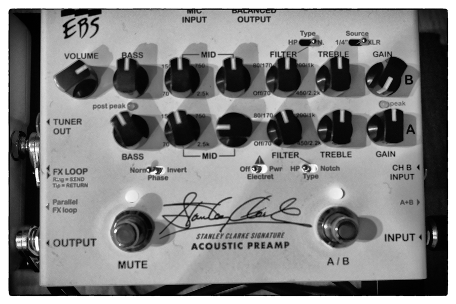 Ausprobiert habe ich u.a. Vong", "Lehle Sunday Driver SW II", "ToneDexter", "Grace Design Felix" und "EBS Stanley Clarke Signature Acoustic Preamp", die ich jeweils vor meinem Glockenklang Steamhammer mit einer "Glockenklang Space Art (1x12)" oder einer "Glockenklang Acoustic 8-1" betreibe. Mit Abstand am besten funktionieren hierbei für mich der "Grace Design Felix" und der "EBS Stanley Clarke Signature". Bei beiden Preamps habe ich auch noch einen zweiten Kanal, bei dem ich auch ein zusätzliches Mikro (auch mit 48V Phantomspannung) verwenden und die beiden Kanäle mischen kann. Alternativ kann ich an dem 2. Kanal auch ein E-Bass betreiben. Zusätzlich haben beide Preamps auch einen DI-Ausgang. Unter Kosten- und Größengesichtspunkten ist hierbei der "EBS Stanley Clarke" mein Favorit.