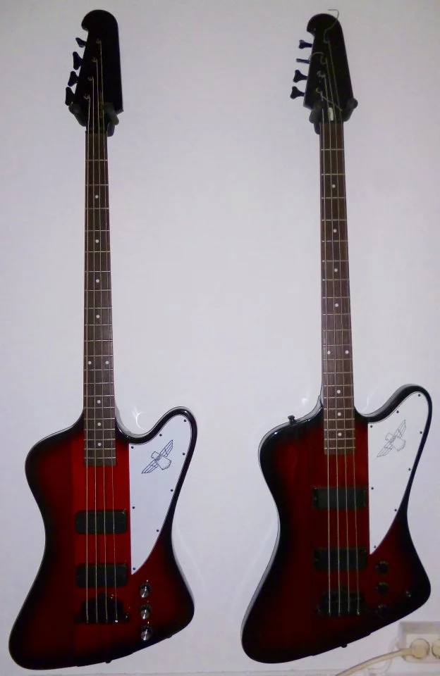Ah, den Epi mit Schraubhals würde ich garnicht mit anderen Thunderbirds vergleichen, der ist schon sehr anders – sieht nur optisch ähnlich aus.... einzuordnen weil es ja hieß das beide völlig unterschiedliche Bässe seinen. Der Epi mit Schraubhals und der Gib mit dem durchgehenden.