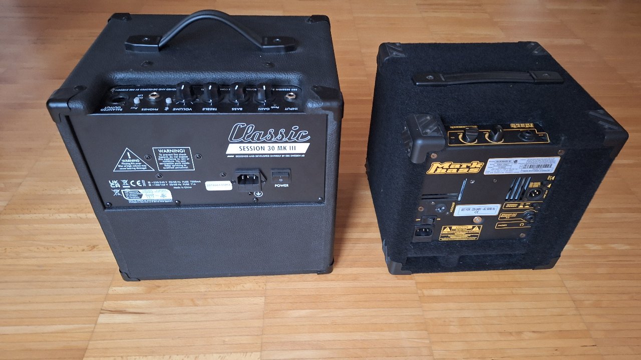 EBS Session 30 Mk III steht hier nun doch noch ein Mark Bass Micromark 801. Ich werde einen der beiden wieder verkaufen, bin aber noch unentschieden welchen. Beide sind gut und aber auch recht gegensätzlich. In jedem Fall reicht die Lautstärke beider für die Belange der aktuellen Band komplett aus. Habe mit jedem Modell schon jeweils ein Konzert gespielt. Was die Entscheidung welcher gehen kann jetzt noch etwas komplizierter macht ist der Umstand dass ich komplett auf U-Bass gewechselt bin (Kala Journeyman) und der Pre-Amp hinter dem Piezo Pickup noch mal eine ganz neue Welt von Soundmöglichkeiten eröffnet. Ich drehe also noch an den Reglern und suche nach der optimalen Einstellung.