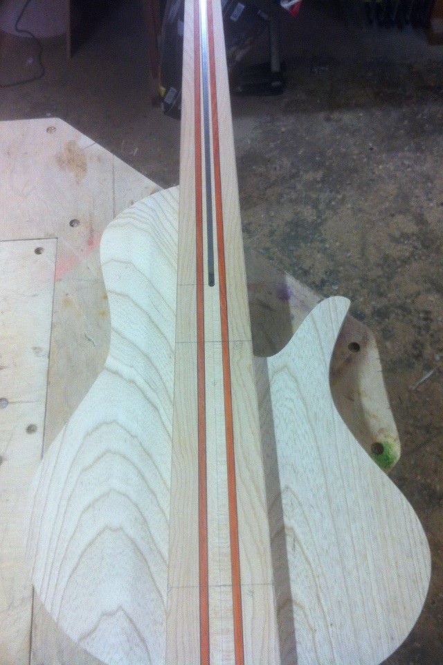 Wie presst du die Seitenteile an den Hals? Mit Schraubzwingen stell ich mir das schwierig vor. Bzw. könnte man nicht erst die Seitenteile anleimen und dann die äußeren Rundungen fräsen?