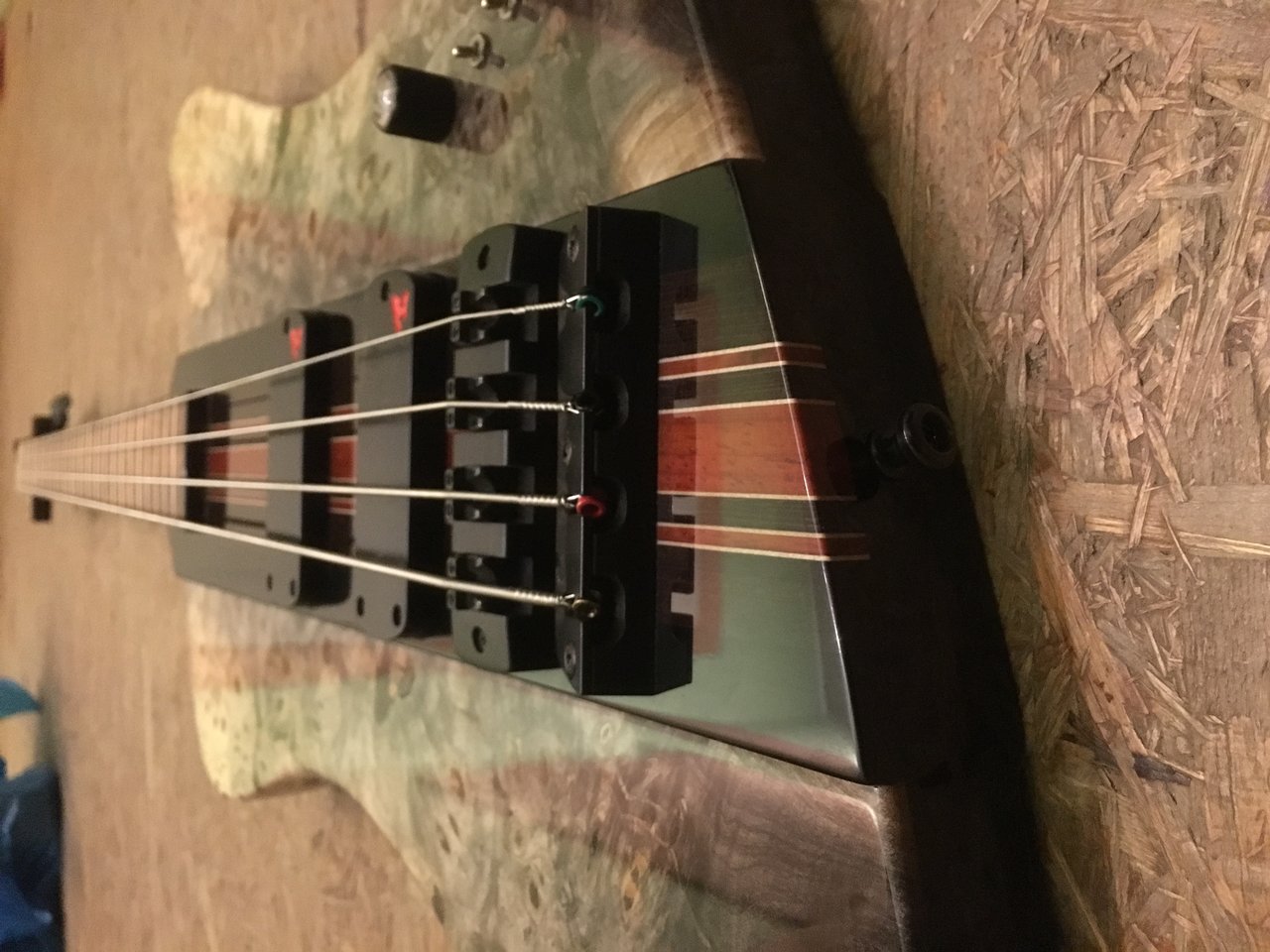Black Limba body, Buckeye Burl-Top, Wenge/Padouk-Hals, Chechen-Griffbrett mit Ebenholzbinding und LEDs, 34"