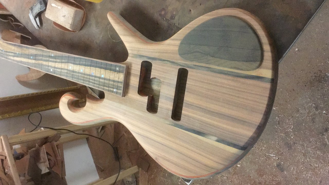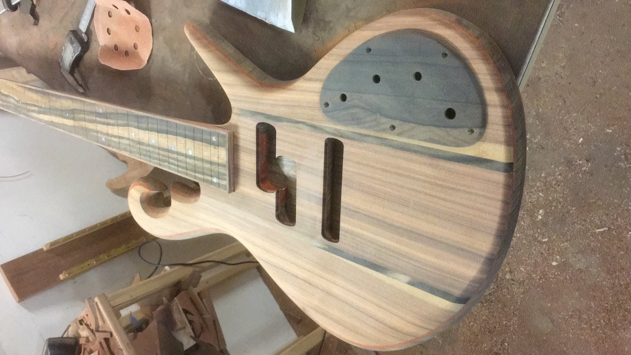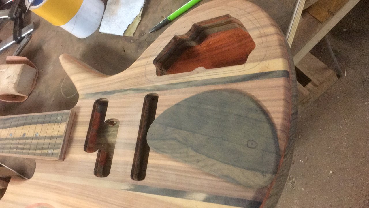 Sehr schick ... aber was hängt da in dem Bild neben dem Claypool Bass?uuuund hier die Pickup-Fräsungen und gewässert ist er auch. Mit dem Zargenshaping bin ich noch nicht durch! Da muss noch bissl was gemacht werden.