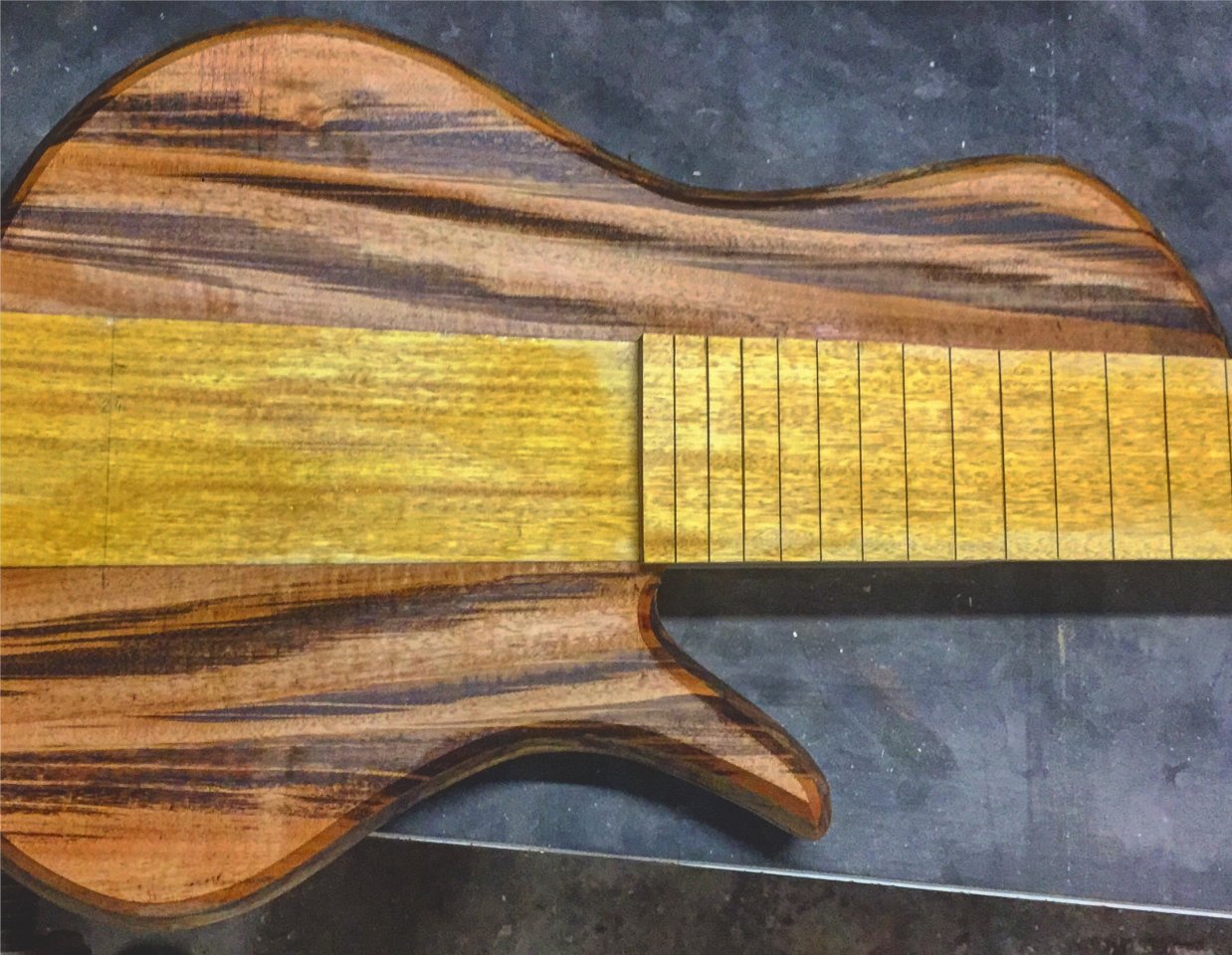 Yes! Ist aber nur das Griffbrett und die Halsfront im Body! Nicht der ganze Hals. Der ist aus Esche mit Wenge. Also mal eine vollkommen andere Konstellation.Das gelbe Holz am 6er, ist das Zitrone?
