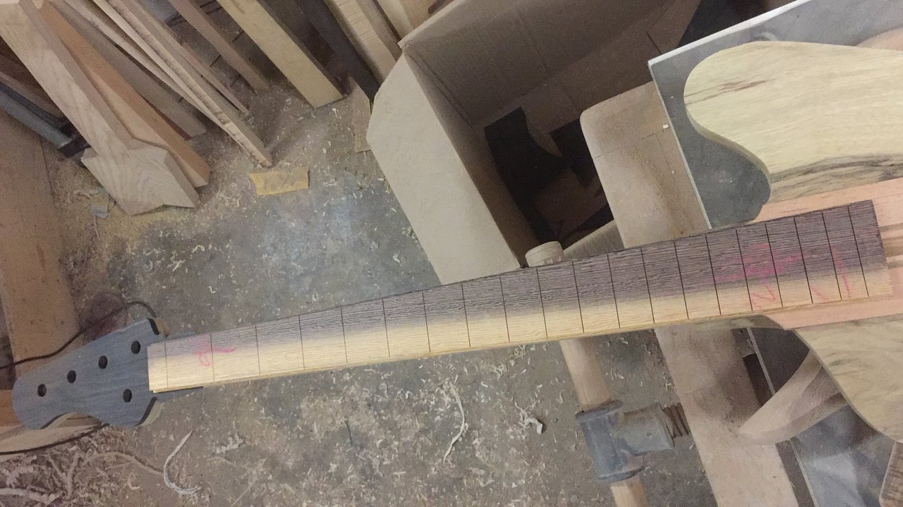 Ja und jetzt kommt noch ein Binding aus Bloodwood dran.Wenge in weiß. Auch nicht schlecht.![]()