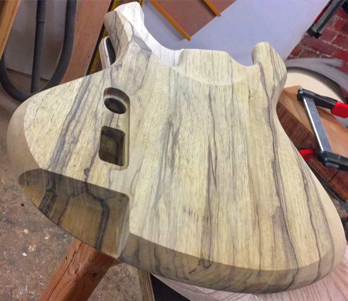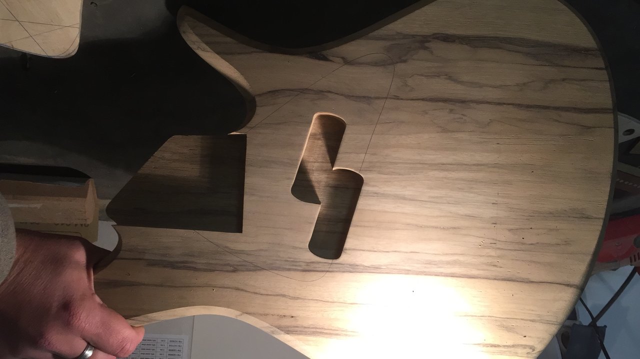 Heute gibt es ein schööön minimalistisches Efach. Ins runde Lock kommt ein Stallar Tone-Poti und im Eckigen landet zum Einen die Zargenbuchse, die ihn noch bohren muss, und zum Anderen der Vol-Poti.