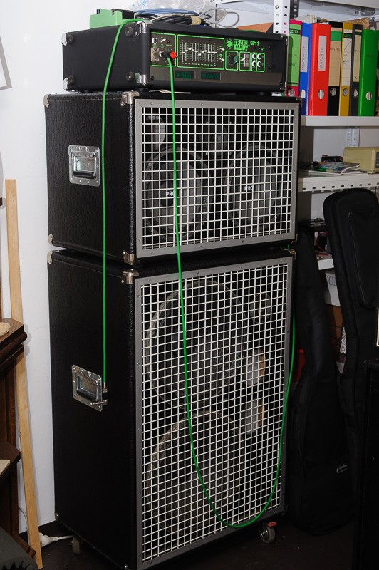 Gekauft bzw. aufgebaut um 1990 herum in einem Anfall von Größenwahn und bis heute weiß ich nicht, wie laut das Ding wirklich kann, da ich auch bei Auftritten nie weiter als halb aufgedreht habe.