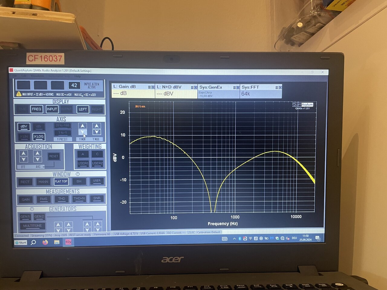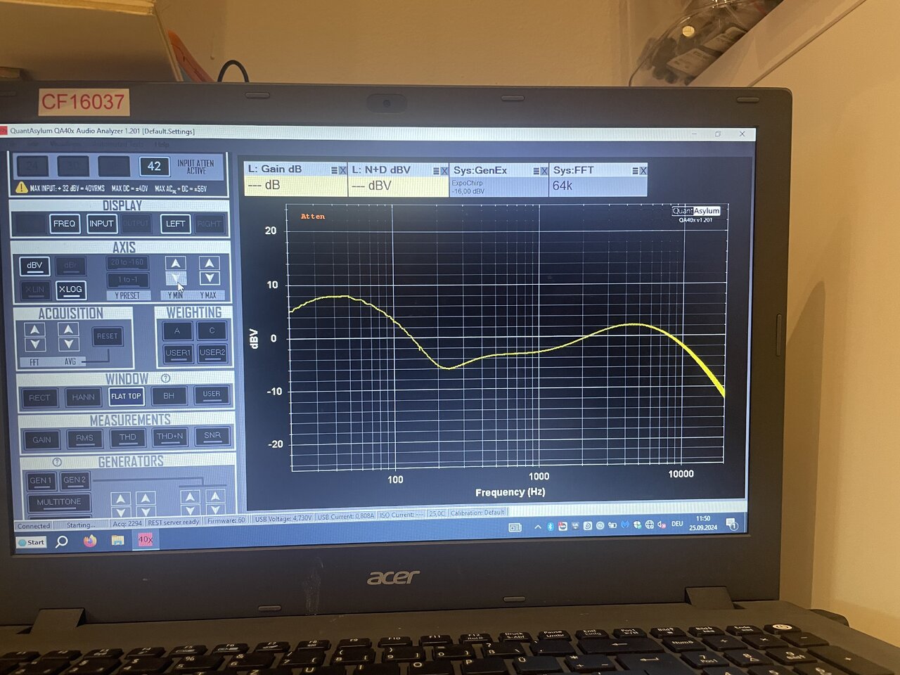 Magst du mal loopback Messungen zu THD+N und IMD machen? Am besten gestepped.Inzwischen habe ich mir den Quantasylum QA403 geholt, eine Komplettlösung für den PC:
