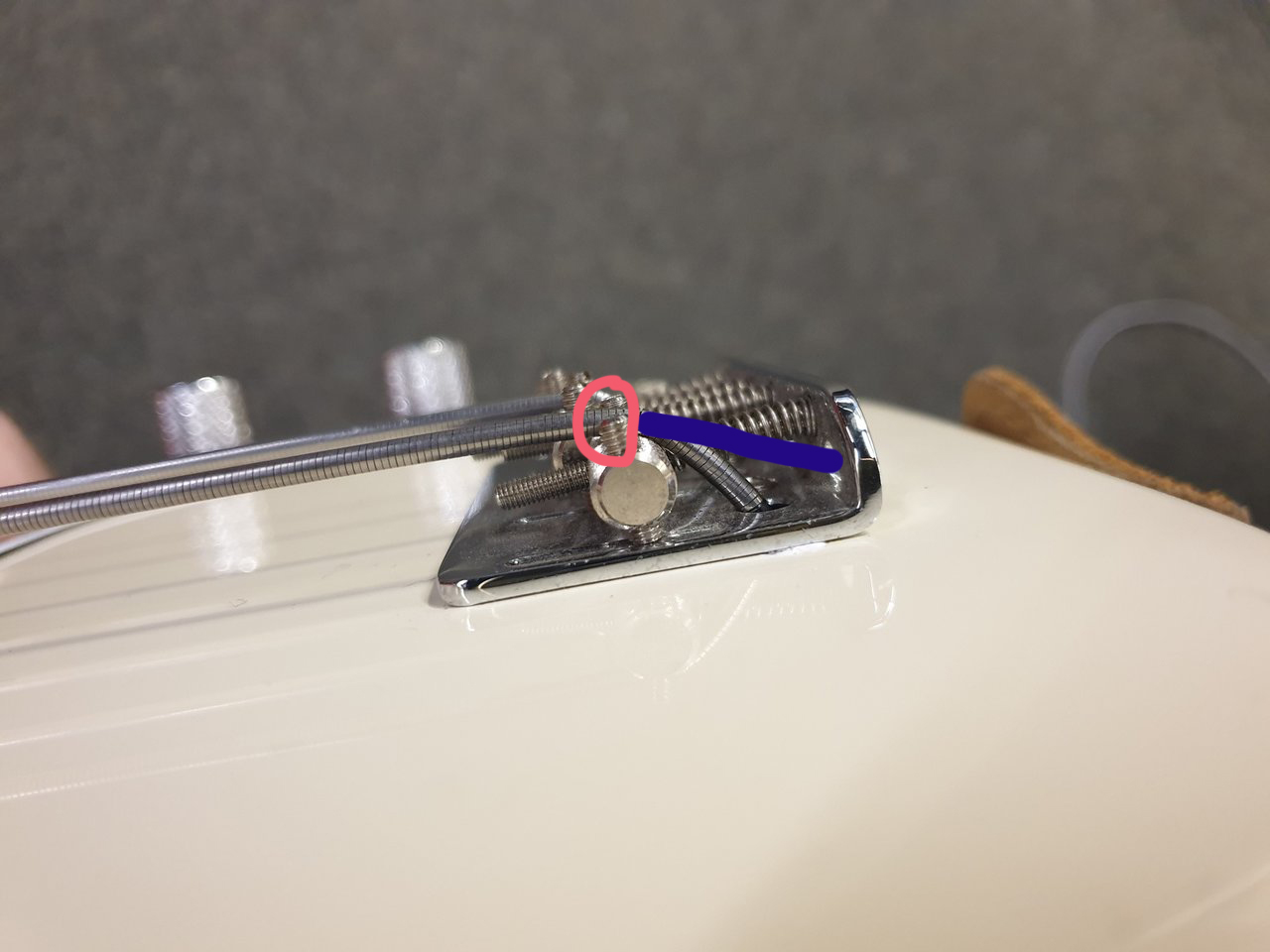 Ich habe die Befürchtung das der Saitenknick am Reiter weiter Richtung Pickup wandert und dadurch das Schwingungsverhalten besch.... wird.