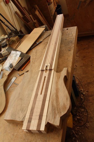 aber an sich ist mir klar was emeint ist ... in demFall würde ich aber die Einstellschraube eher nach oben nehmen wollen bzw würde ich den HAls wahrscheinlich sowieso flach ausarbeiten bis ans Ende vom Griffbrett, was dann einen sehr langen trusrod nach sich ziehen würde.