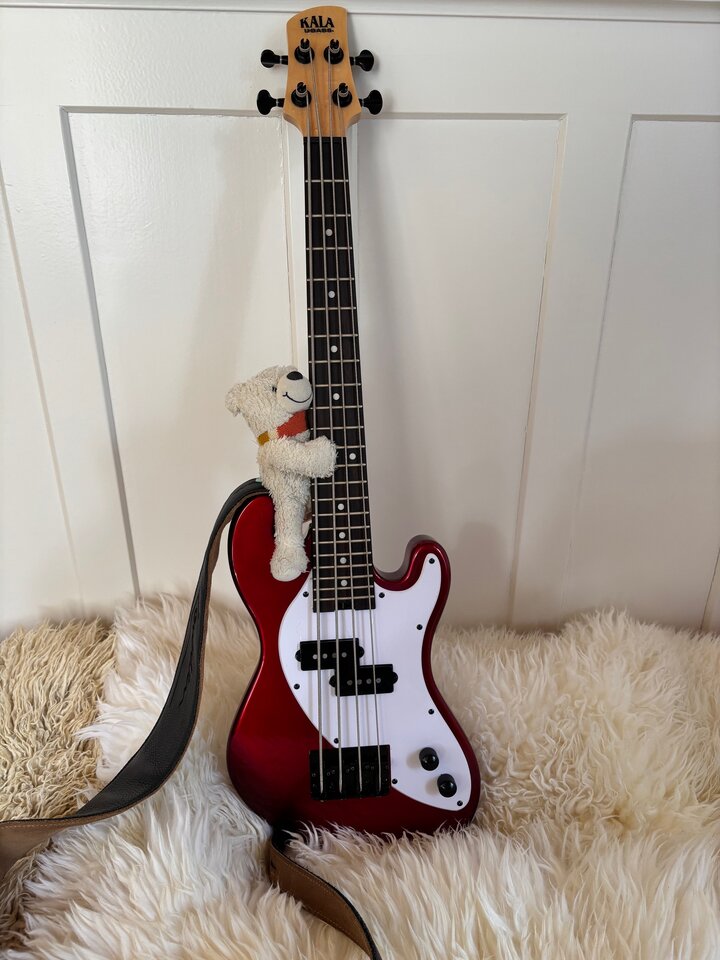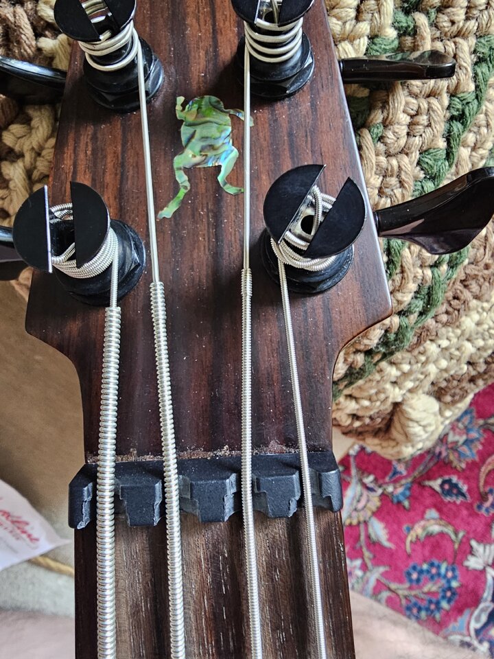 Was auch kein Problem ist. Ich habe nur geschrieben, auf was ich vorbereitet bin, dass waren sozusagen "Zitate" anderer. Somit alles gut. Ich denke, der Kleine darf bleiben, keine schwerwiegende Qualitätsstreung. Die E-Saite haben die vielleicht etwas zu kurz abgeschnitten, kaum noch Windung nach Stimmung. Der Gummi wird sich bestimmt aber eher noch dehnen als sich zusammenzuziehen, oder? Macht auf jeden Fall noch erstem Eindruck Spaß. Die Dots an der Seite sind eher etwas verwirrend und vielleicht mache ich die seitlichen Bundmarkierungen noch hell, die sind ja kaum sichtbar...Es ist halt einfach kein E-Bass und es sind keine E-Bass-Saiten.