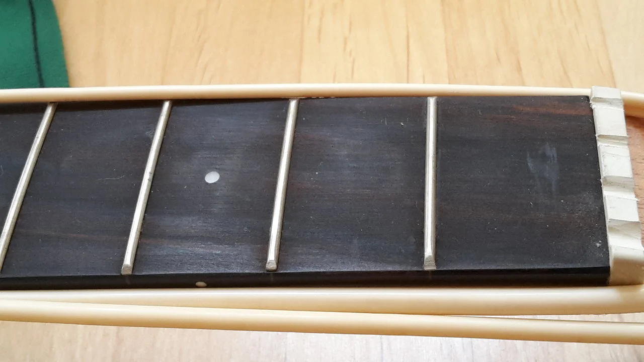 Beim akustischen Anspielen fiel mir sofort ein Schnarren am 2. Bund der A-Seite auf.