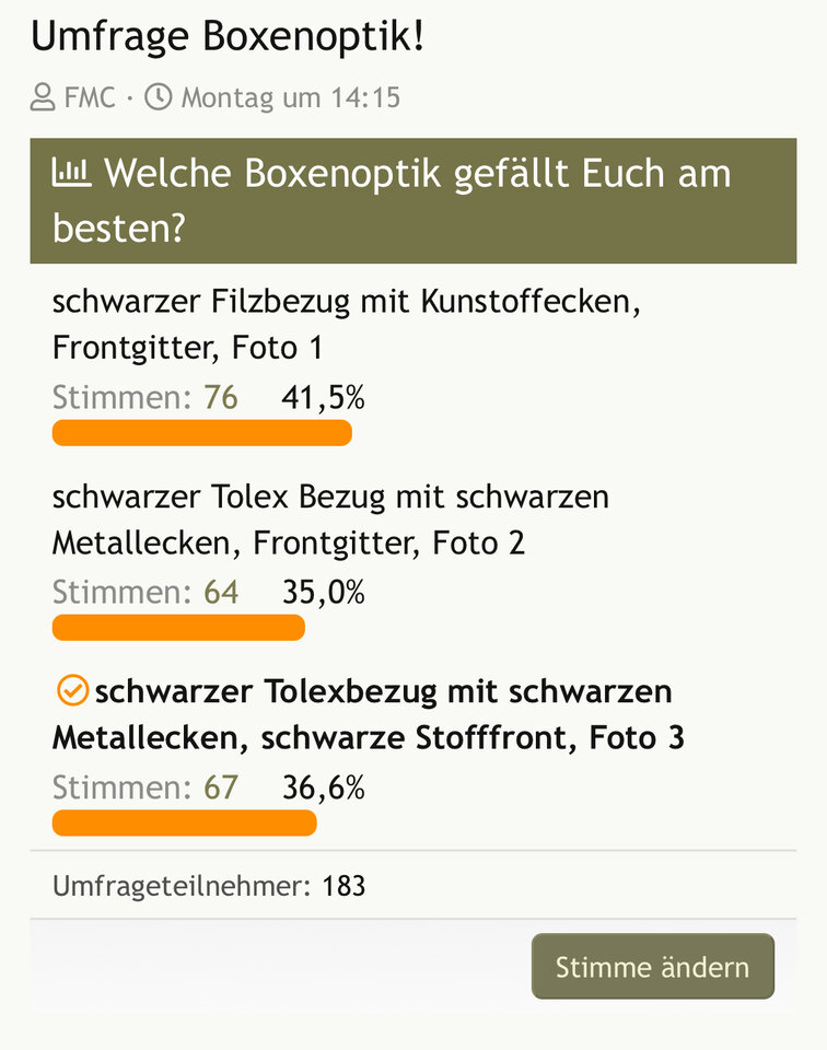 Die nötige Ausrüstung ist tatsächlich ein Argument, das ich vollkommen nachvollziehen kann.Professionell lackieren ist einfach nochmal eine völlig andere Angelegenheit. Da muß man ausgerüstet sein. Mir gefällt die sehr grobe Lackoberfläche der Barefaced Boxen die ich gesehen habe überhaupt nicht. Da ist Tolex viel schöner. Das mit dem einfachen Ausbessern von Lackschäden ist natürlich schon richtig.