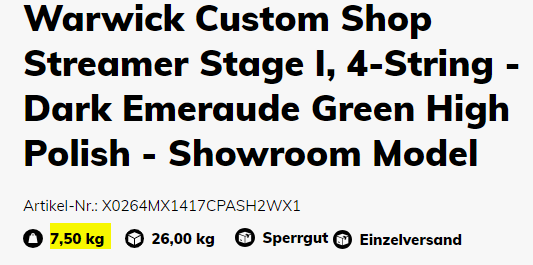 Leude, Transportgewicht, der Bass ist eher leicht.Wtf, 7,5 Kilo![]()