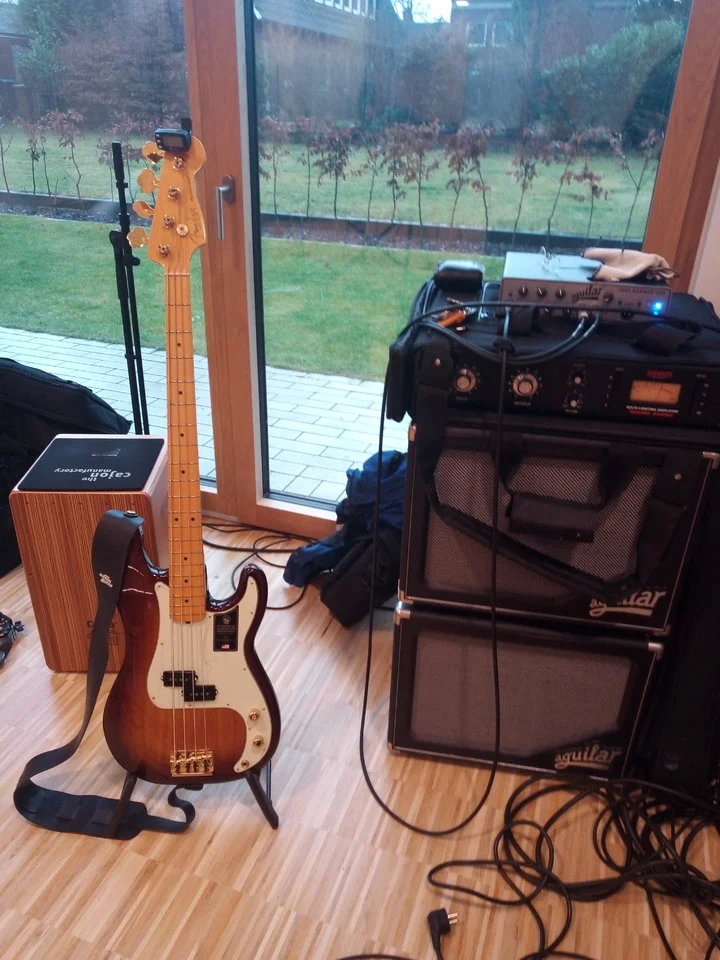 Glückwunsch. Ich bin erst spät zum Precision Bass gekommen. Im Moment ist er mein Lieblingsbass. Ich habe den Pro II in der 75th Version. Goldene Hardware und etwas andere PUs. Absolut fantastischer Sound und Bespielbarkeit.