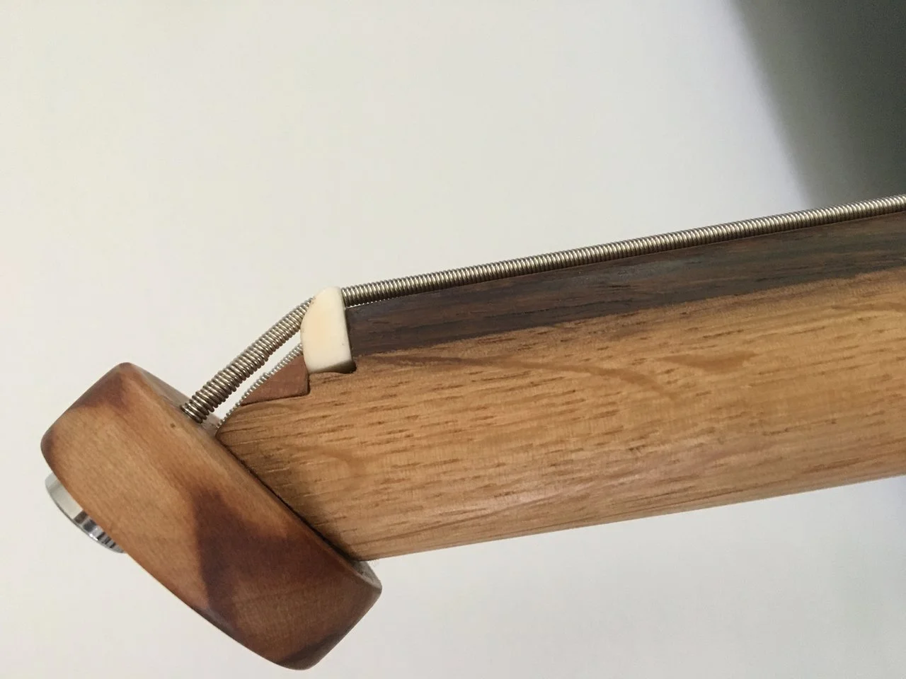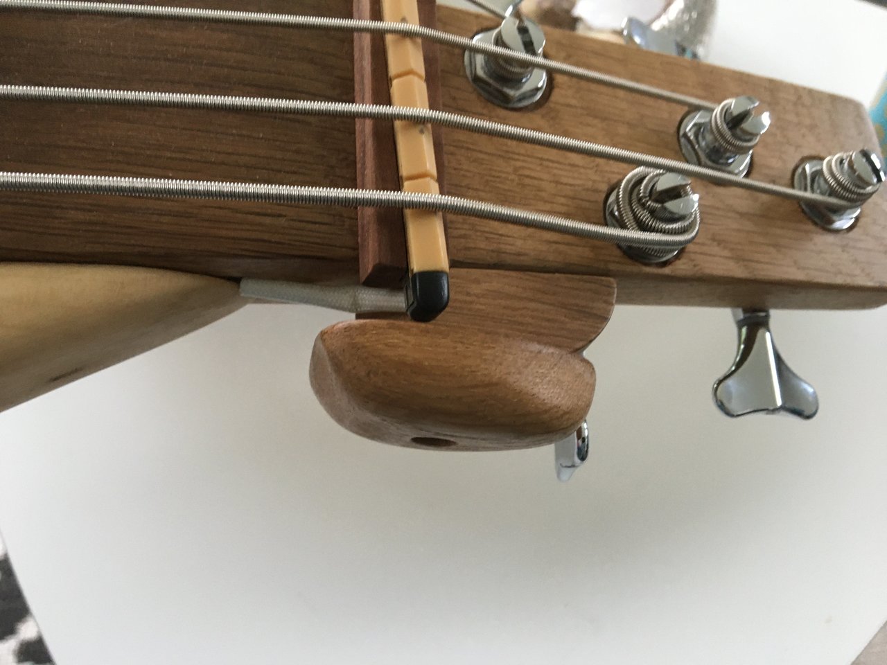Die Hauptwicklung der Shortscale Saiten war bei der E Saite zu dick um in den Schlitz der Mechanik zu passen, musste daher mehr Länge aufrollen, wurde zur Wurscht