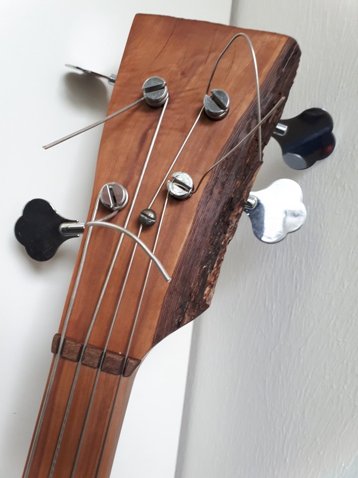 Deshalb kommt er hier jetzt nochmal, der Upsidedown Headless Fretless in 25“ mit durchgehendem Eichenhals ohne Spannstab: